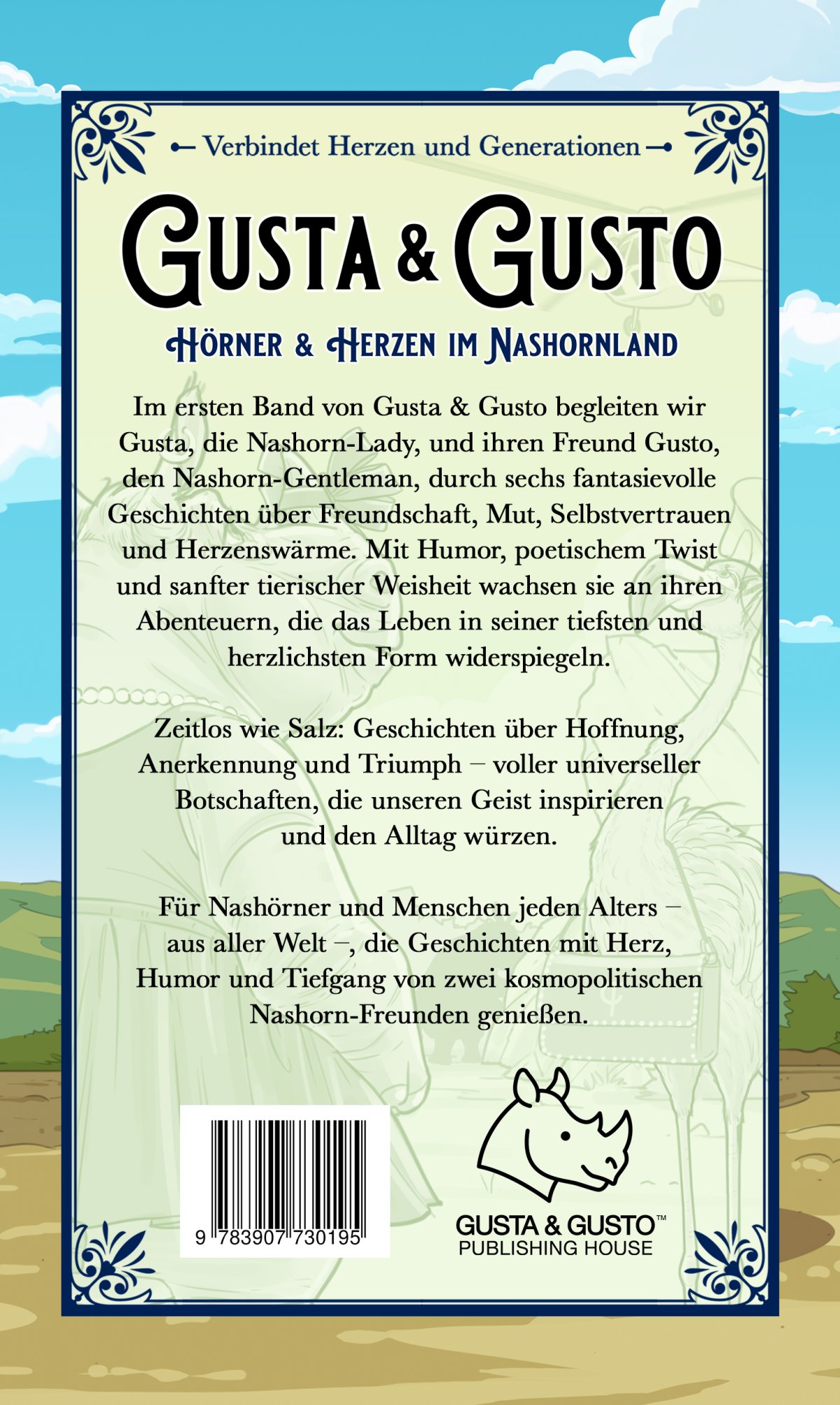 - Gusta & Gusto Hörner & Herzen im Nashornland Band 1 – Cover Rückseite
